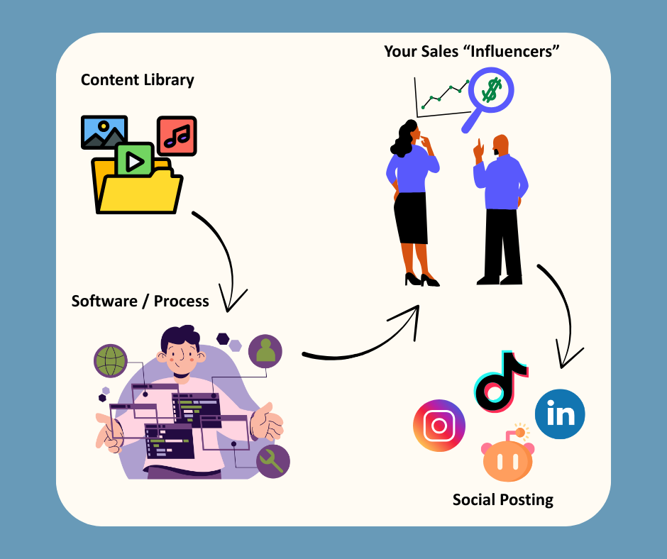 Below are tools where you can support employee advocacy. Preparing content on the platform that sales can choose & pick to schedule, reducing the time required by them.