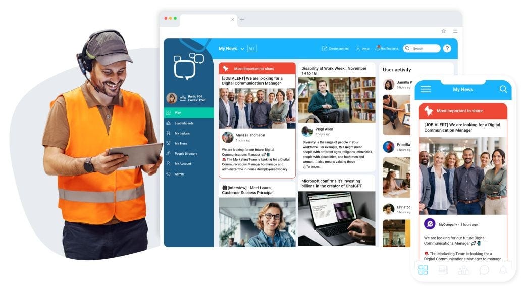 Pros: Best-in-class gamification that drives high user adoption, strong internal communication features, supports user-generated content.