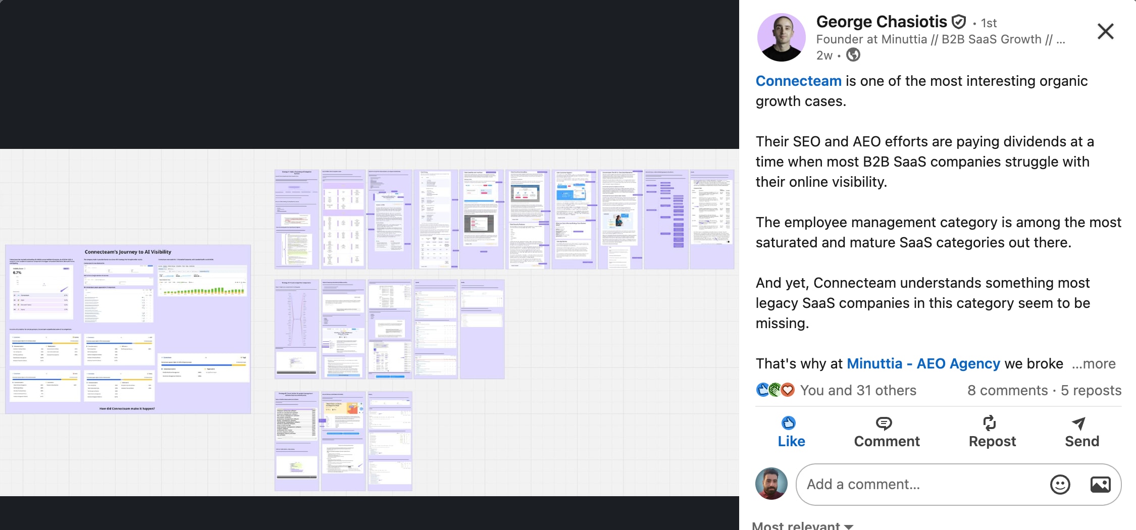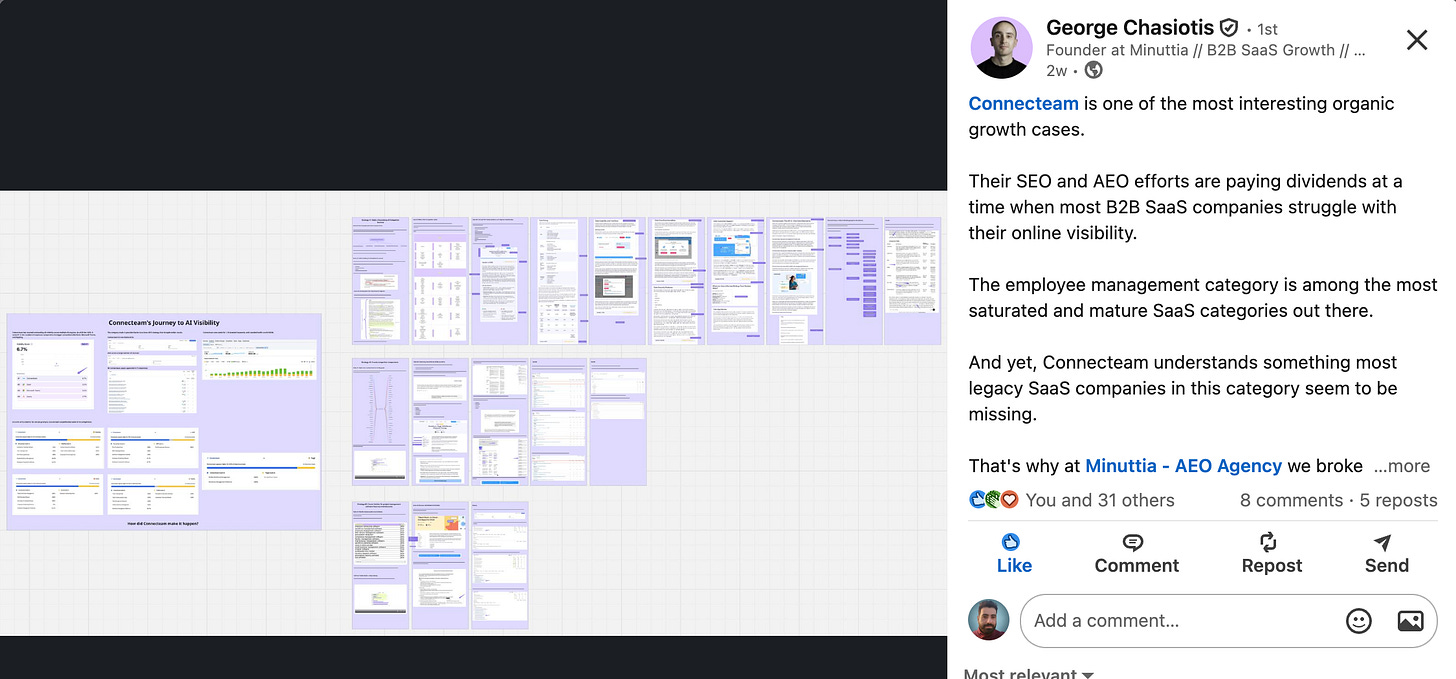 Publicly sharing workflows of successful implementations of your software, or in this case an agency workflow from George Chasiotis in a LinkedIn post can generate a lot of attention.