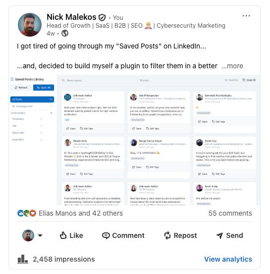 Even, myself, as not a product founder build a plugin and that was one of my most successful posts last month: