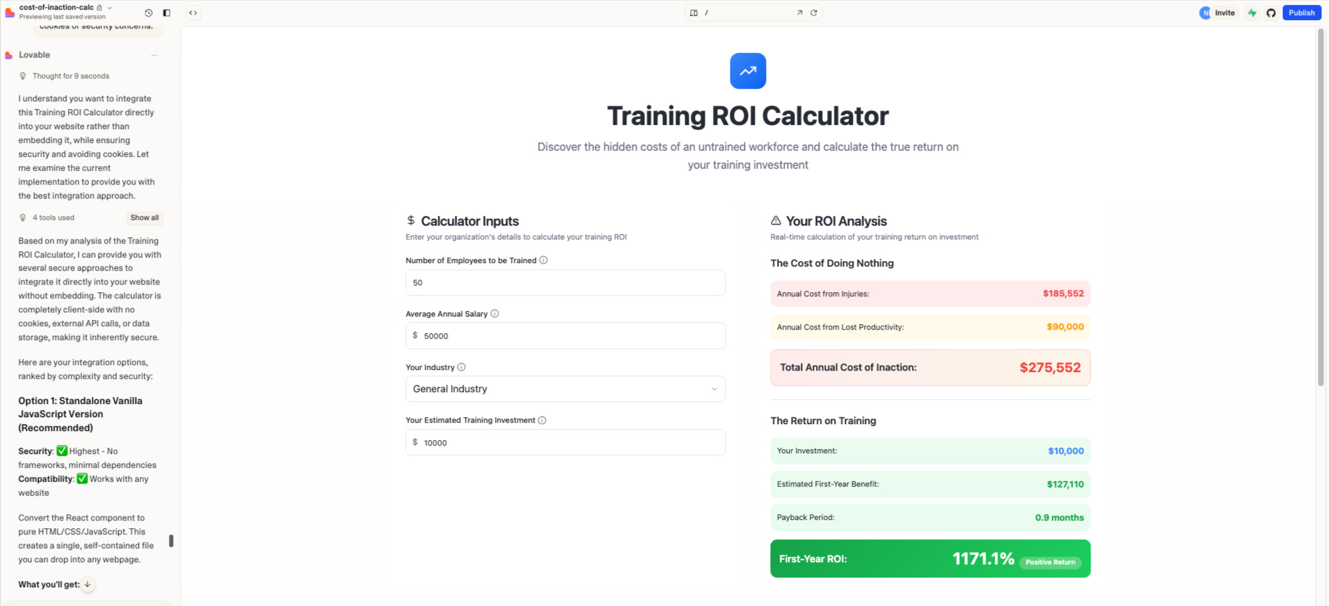 A simpler example here, a Training ROI Calculator.
